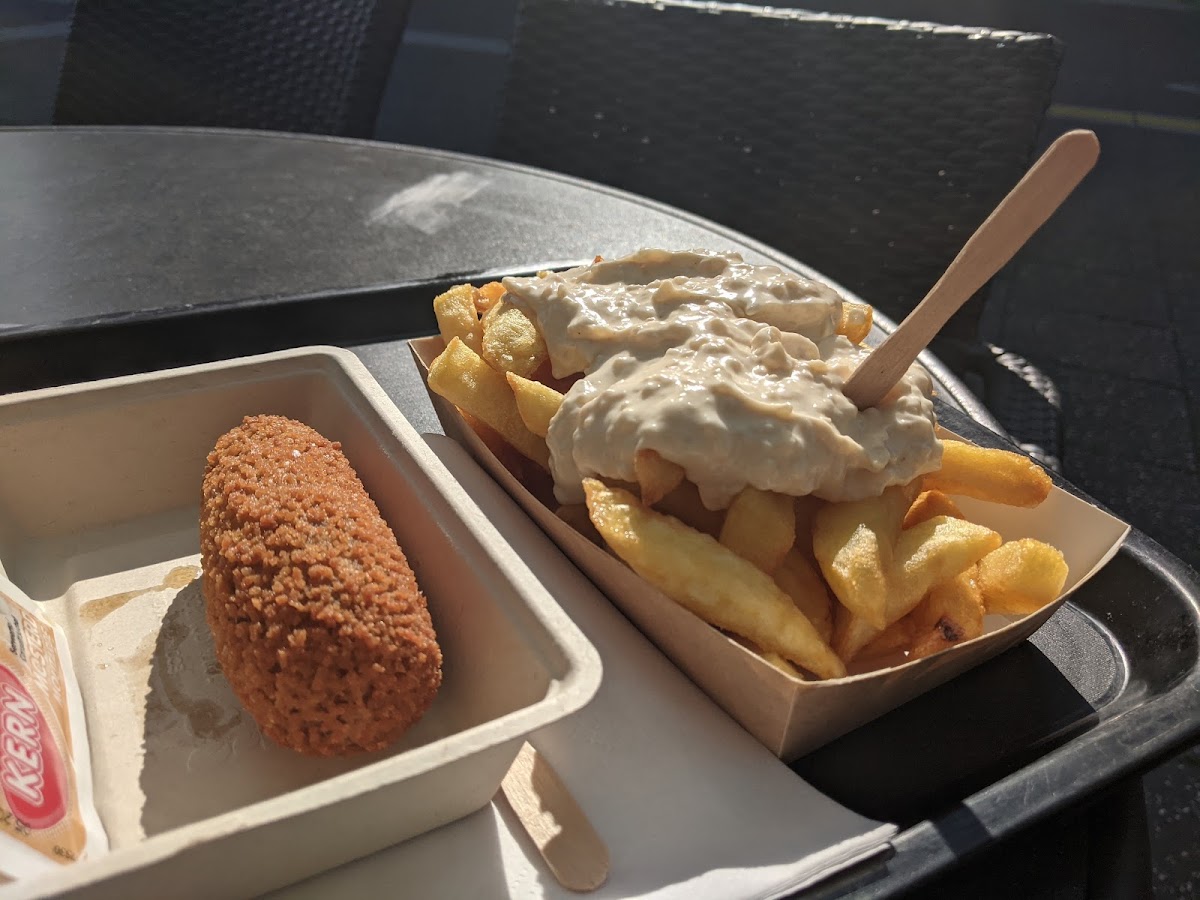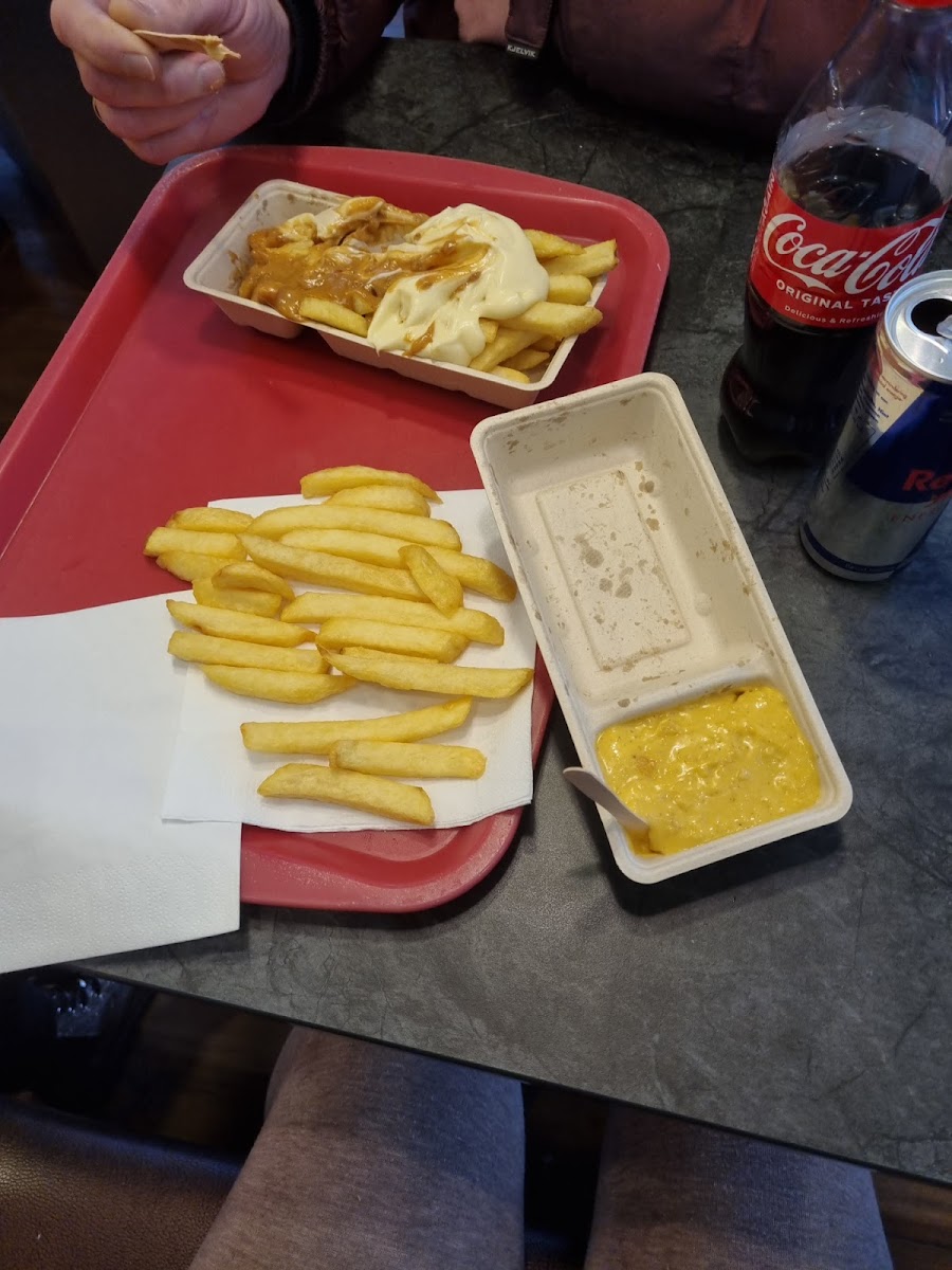 Menu highlights are simple and consistent: large fries with mayo stand out as a reliable choice, and warm snacks like kroketten are part of the easy comfort food feel. Portions are generous, making it a filling option without breaking the bank. The combination deals including a drink offer added convenience for those looking for a quick meal bundle.